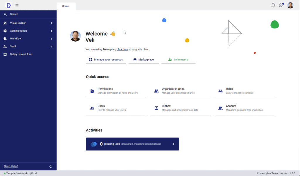 - From Marketplace – Import templates or components from the Zeroplat Marketplace