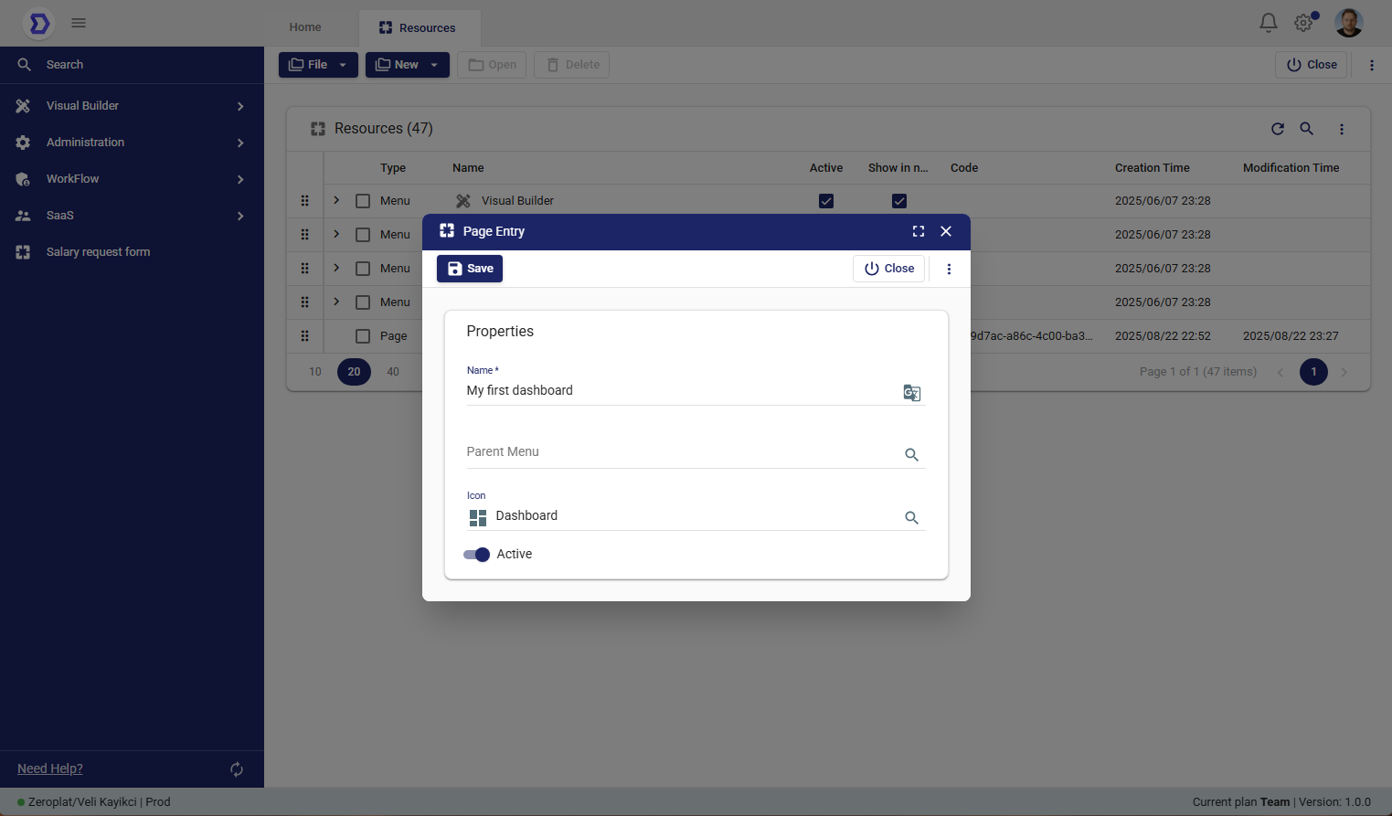 - (Optional) Assign a Parent Menu if you want the dashboard to appear under a specific menu.