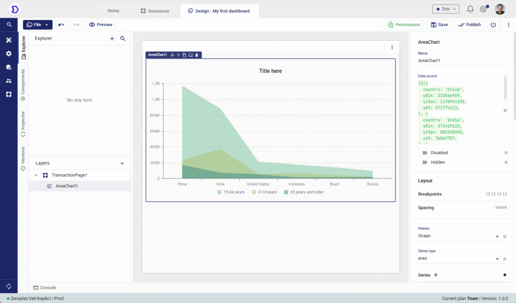 After creating a new Dashboard in the Resources section, the next step is to design its layout and functionality.