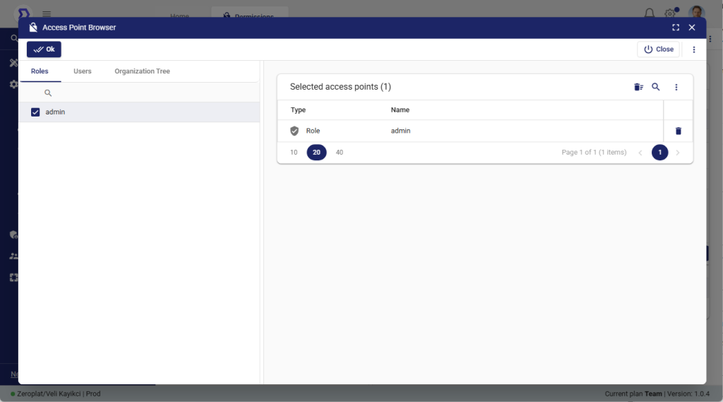 - Selected Access Points (right side): Shows which role, user, or group has been granted approval rights. In this example, the Admin role has been selected.